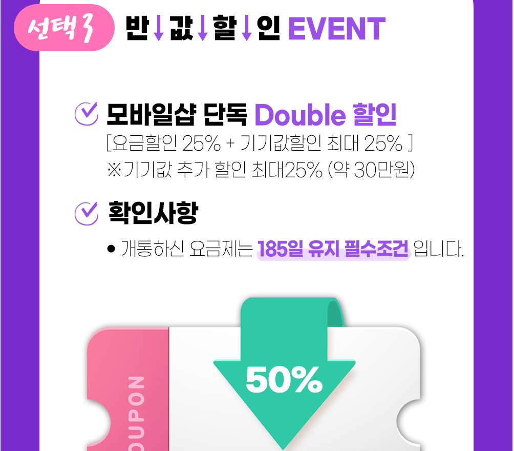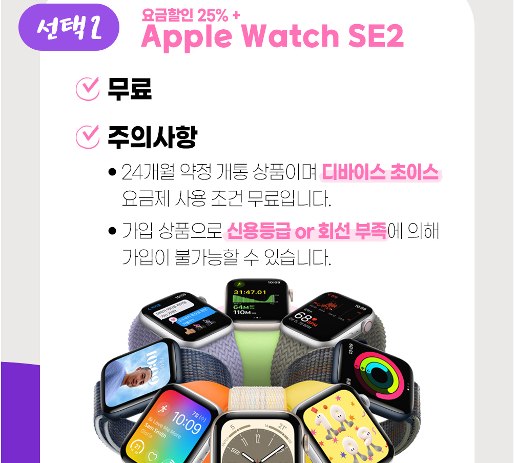 제휴카드로 24개월간 최대 60만원의 할인혜택, 기본사은품 1종과 특별 사은품 1종이 있으며 요금제 자유선택이 가능합니다.