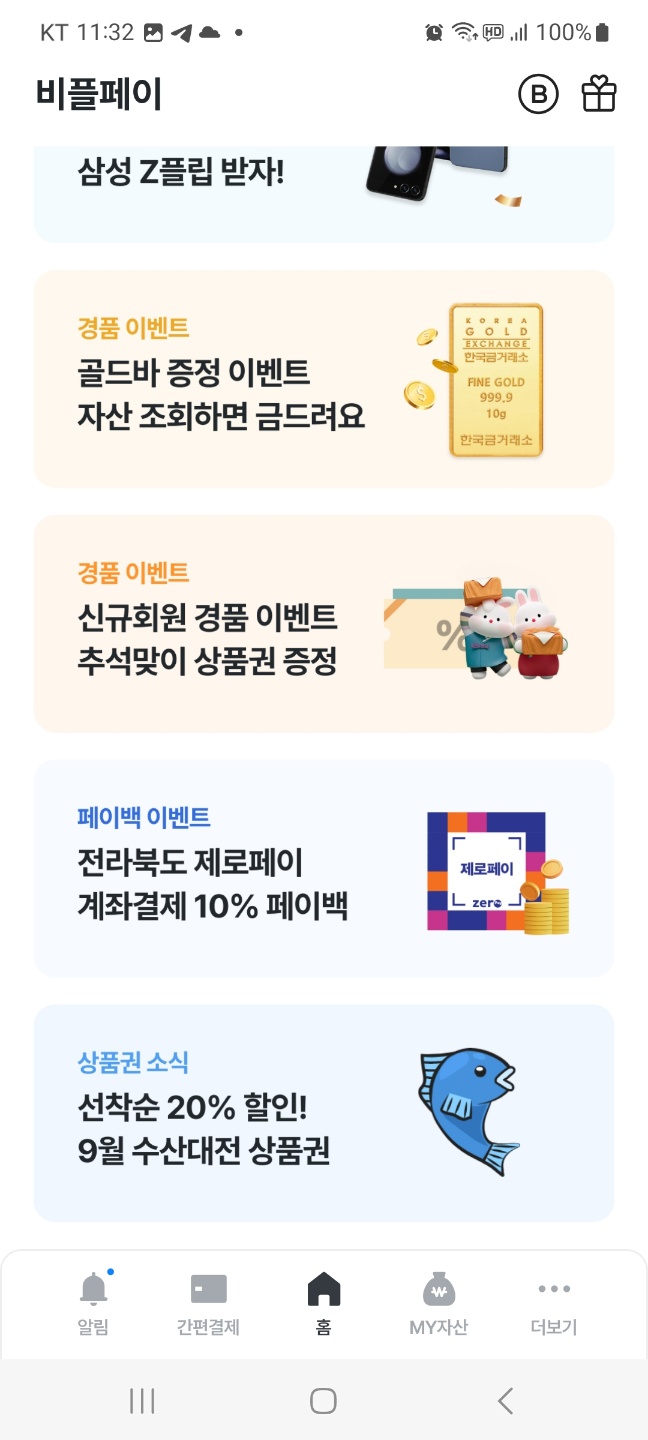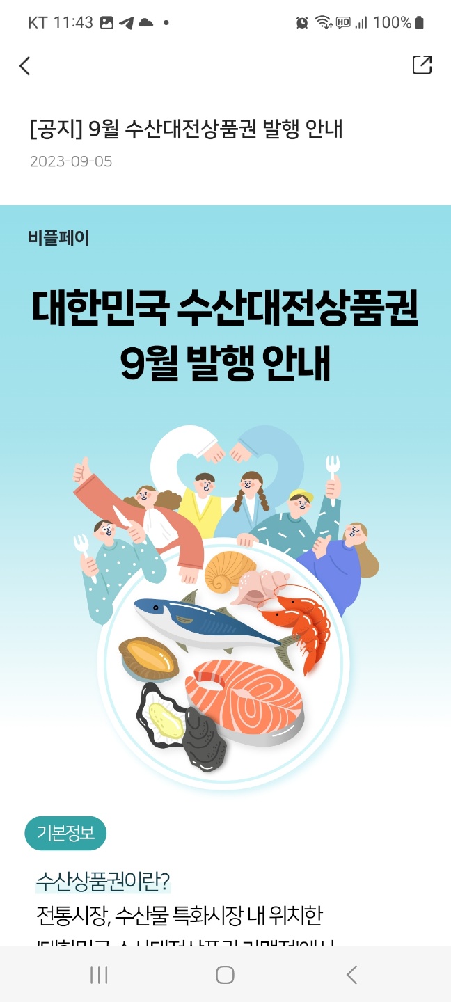 ✔️앱을 실행한 후 아래로 화면을 내려보면 "9월 수산대전 상품권"이라는 광고가 나옵니다.